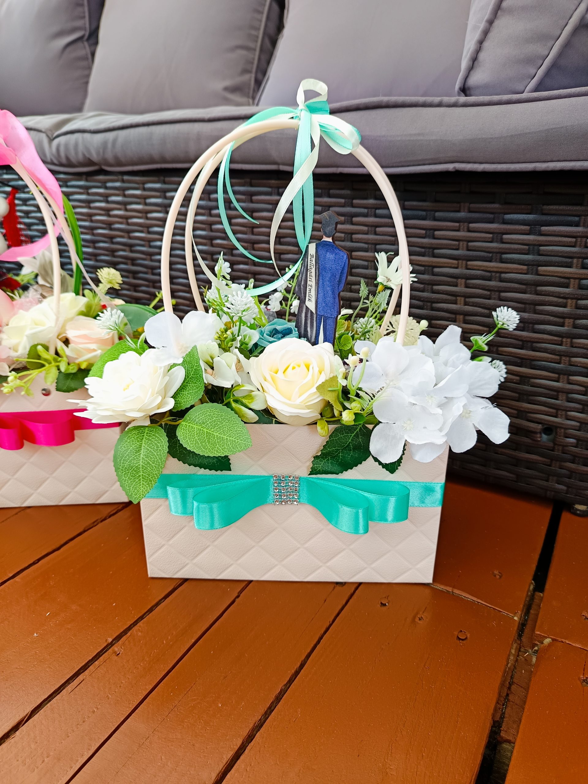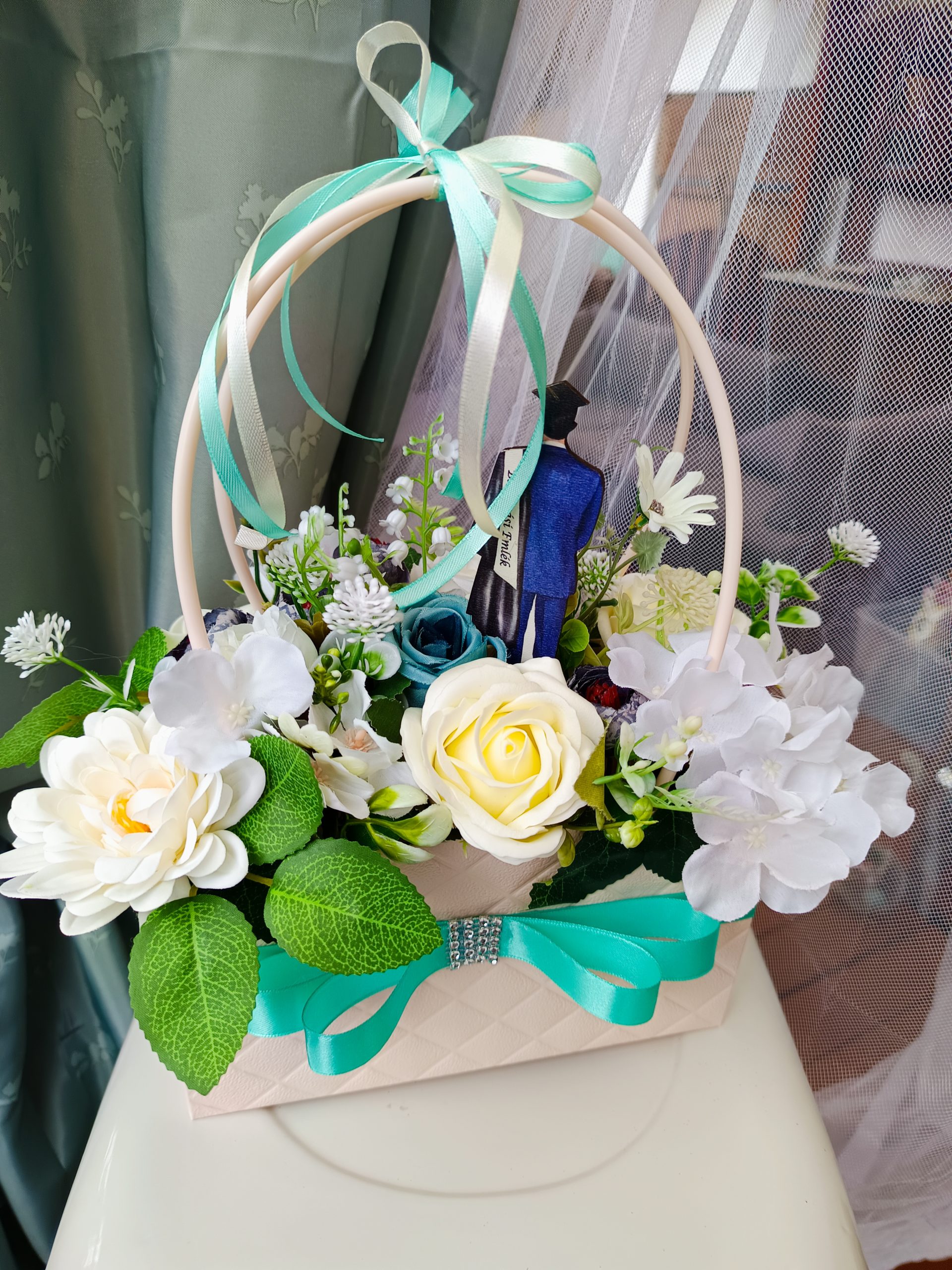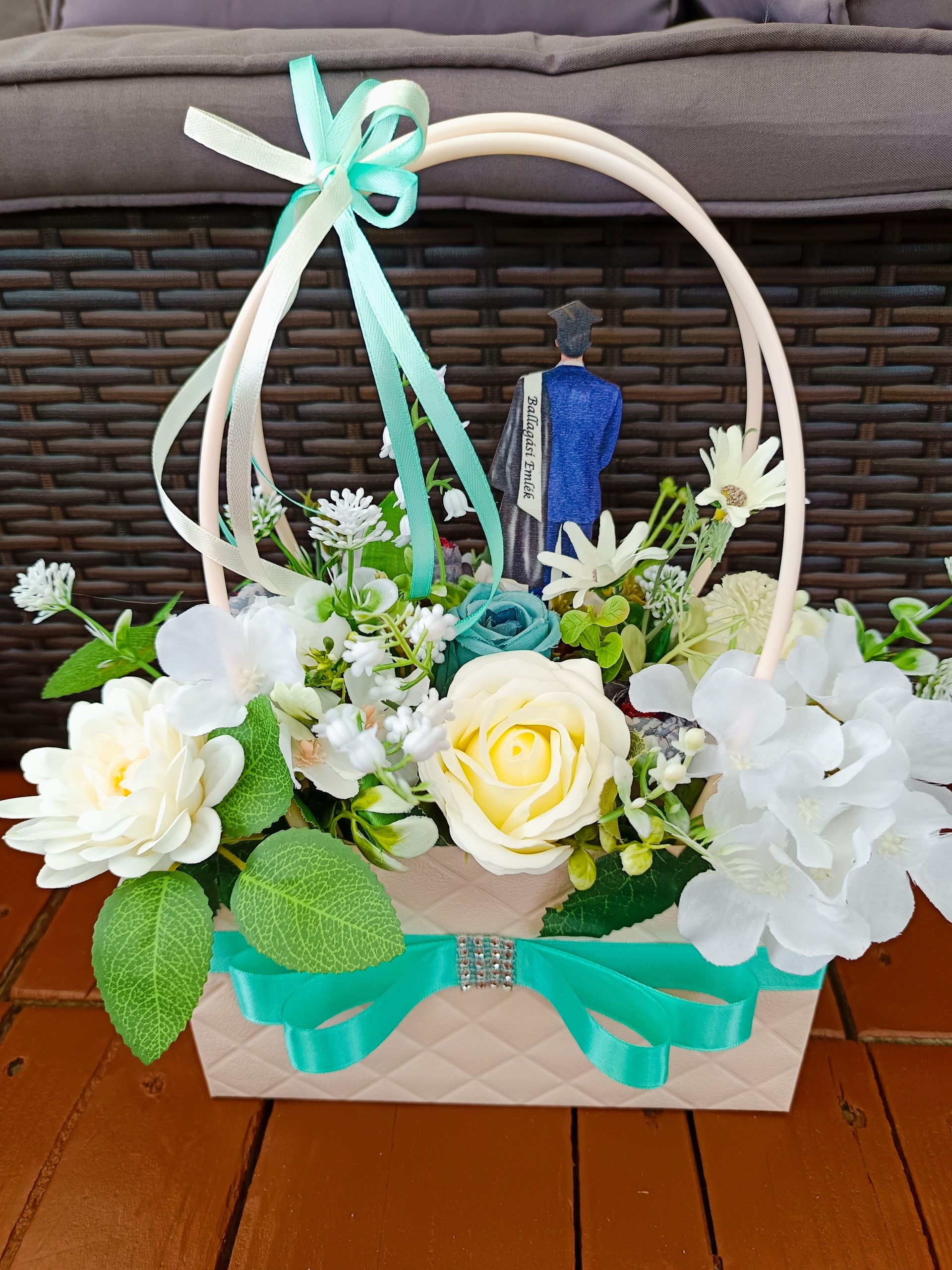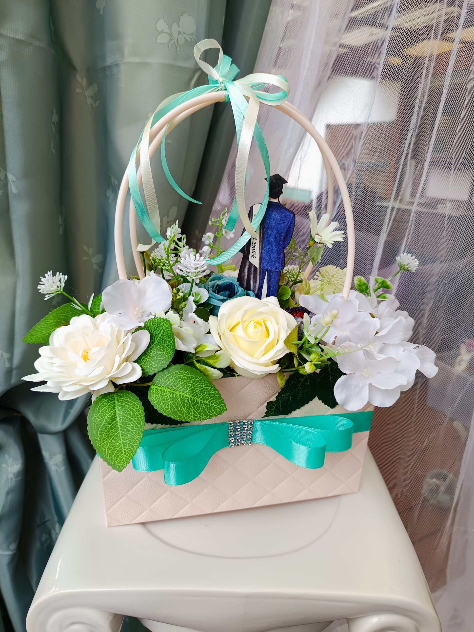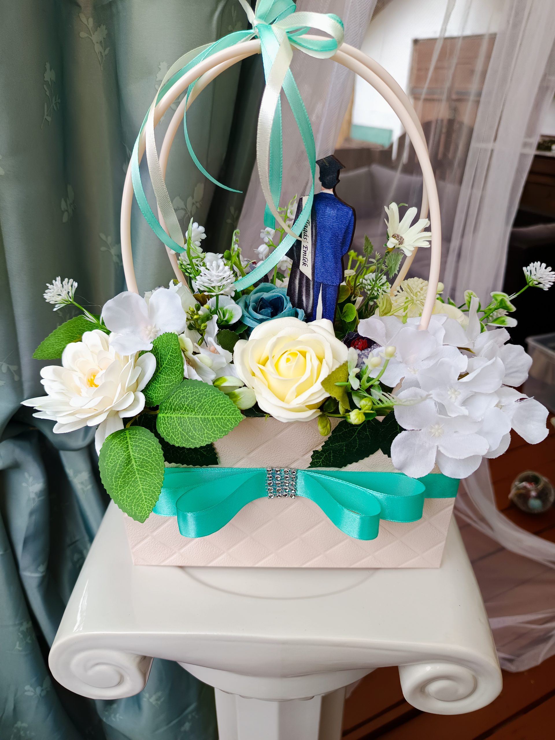 Egy ilyen gyönyörű türkiz-kèk színvilágú virág dekoráció bármilyen alkalomra tökéletes akár születésnap, névnap , vagy csak okozz valakinek örömet..